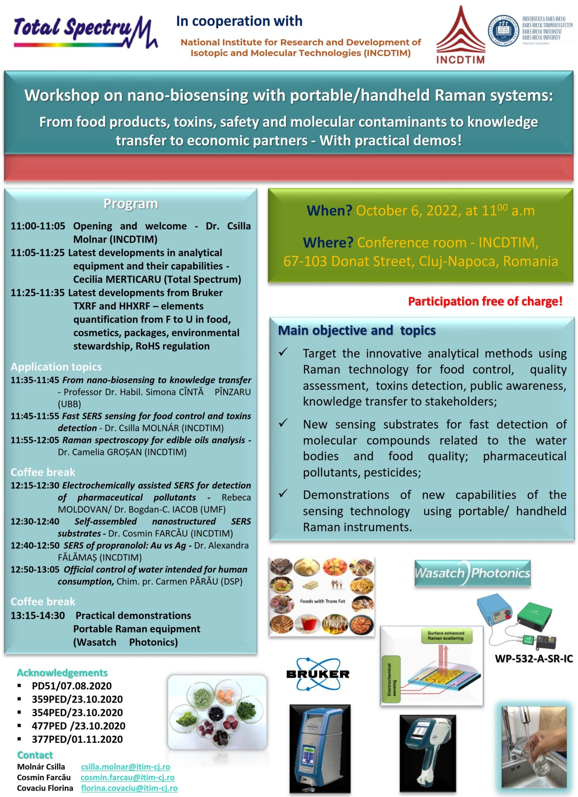 Workshop on nano-biosensing with portable/handheld Raman systems: From food products, toxins, safety and molecular contaminants to knowledge transfer to economic partners – With practical demos!