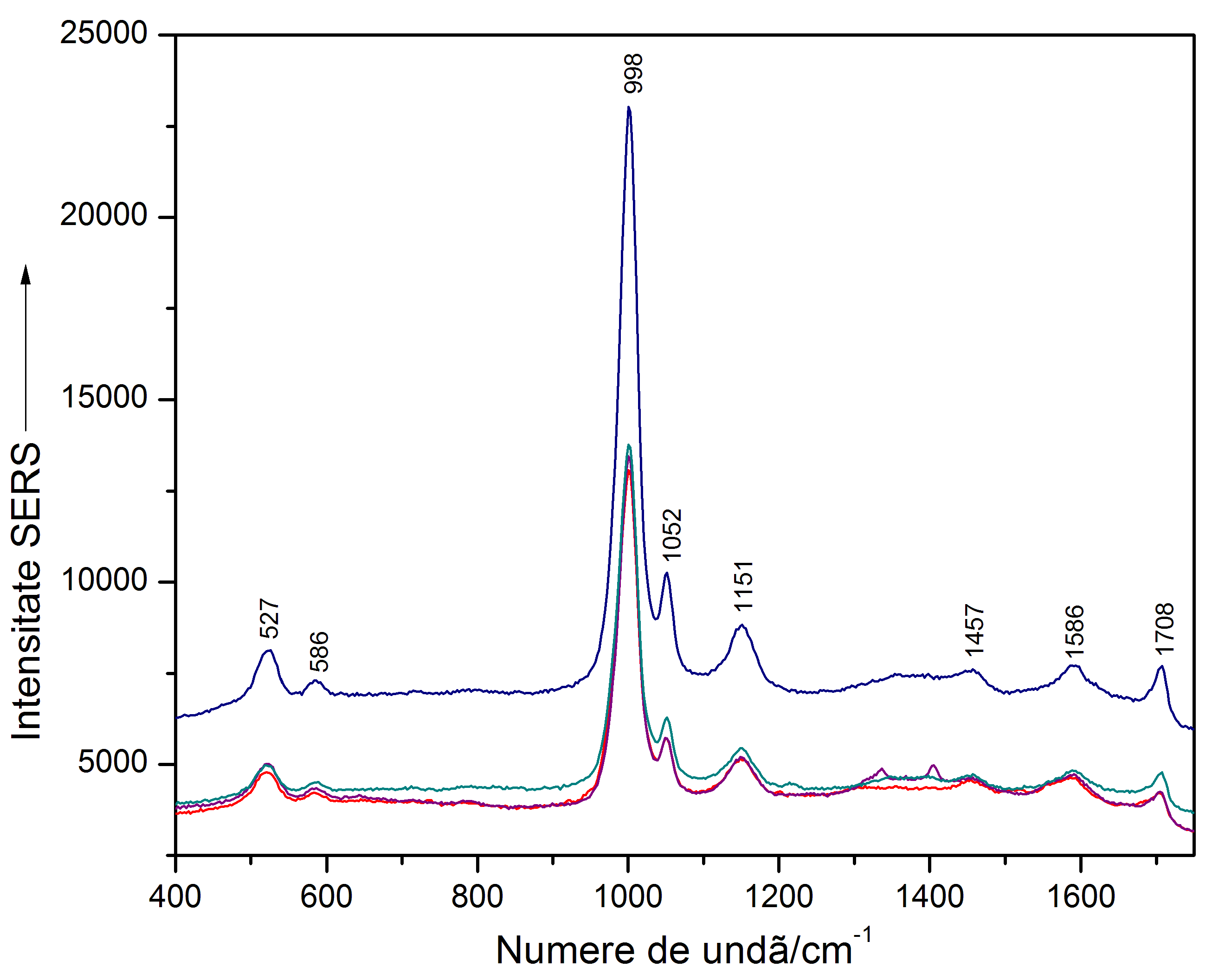Figura 11. Spectre SERS ale ureei pure, în aceeași concentrație cu cea folosită în rețeta de urină artificial sintetizată.În concluzie, până să putem implementa această tehnică de detecție pe bază de dispozitiv microfluidic pentru probe ce imită probele reale vor mai fi necesare câteva etape intermediare de optimizare a detecției ultrasenzitive cu această abordare.