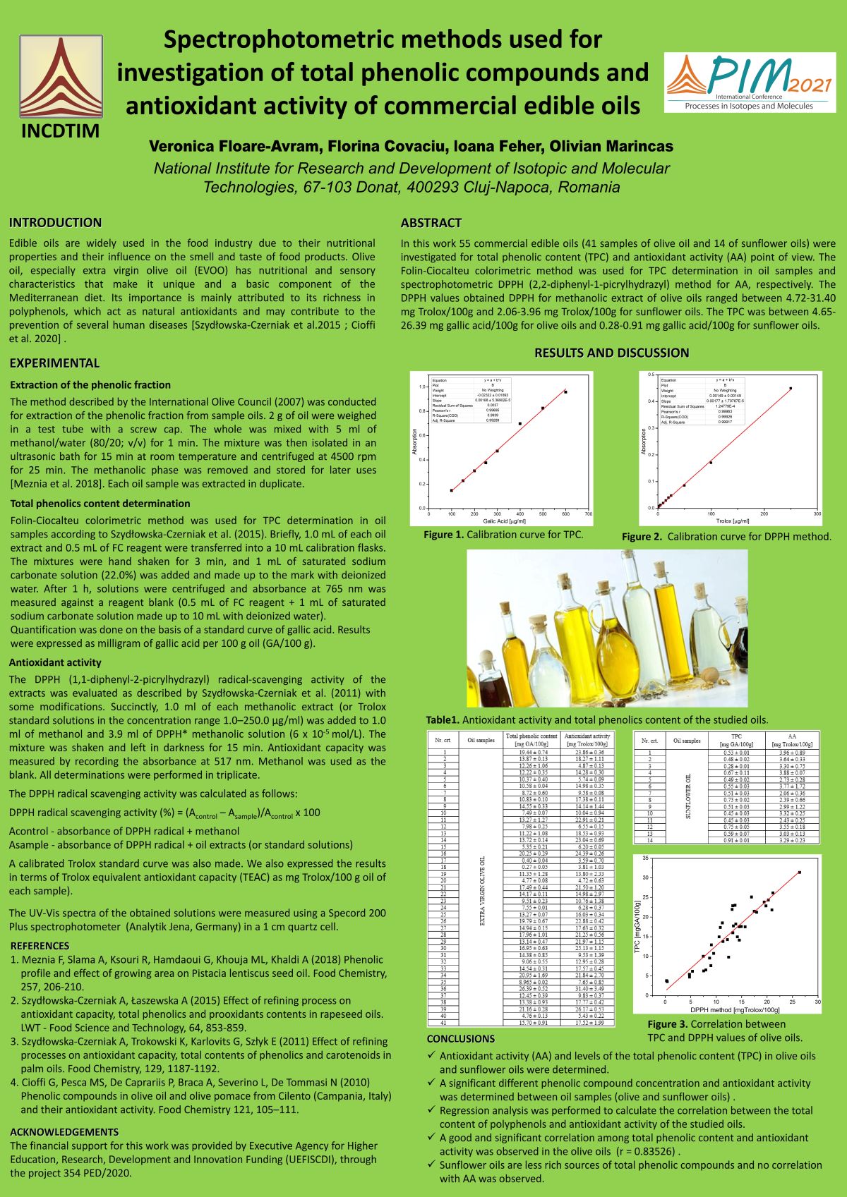 Spectrophotometric methods used for investigation of total phenolic compounds and antioxidant activity of commercial edible oils