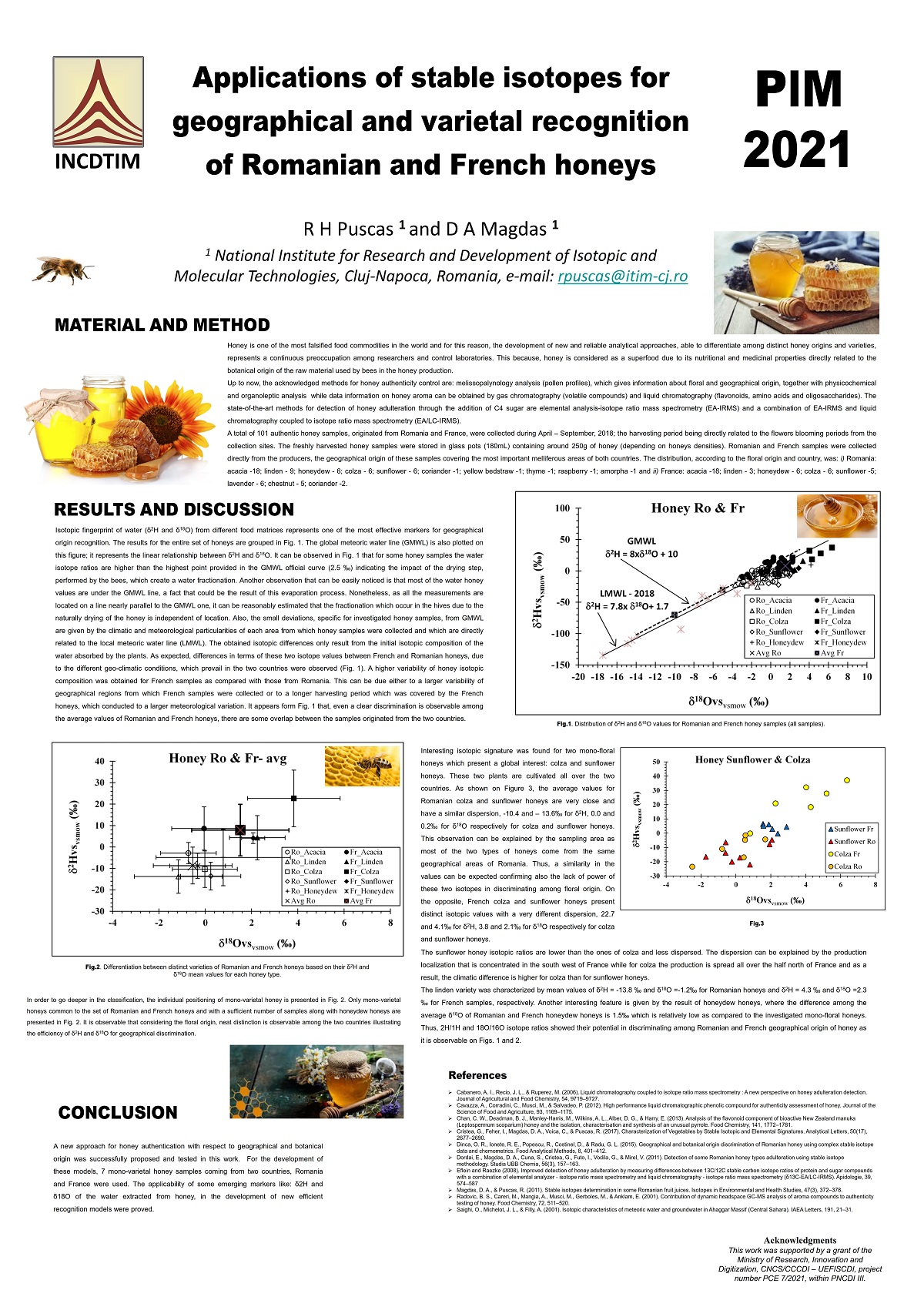 Applications of stable isotopes for geographical and varietal recognition of Romanian and French honeys