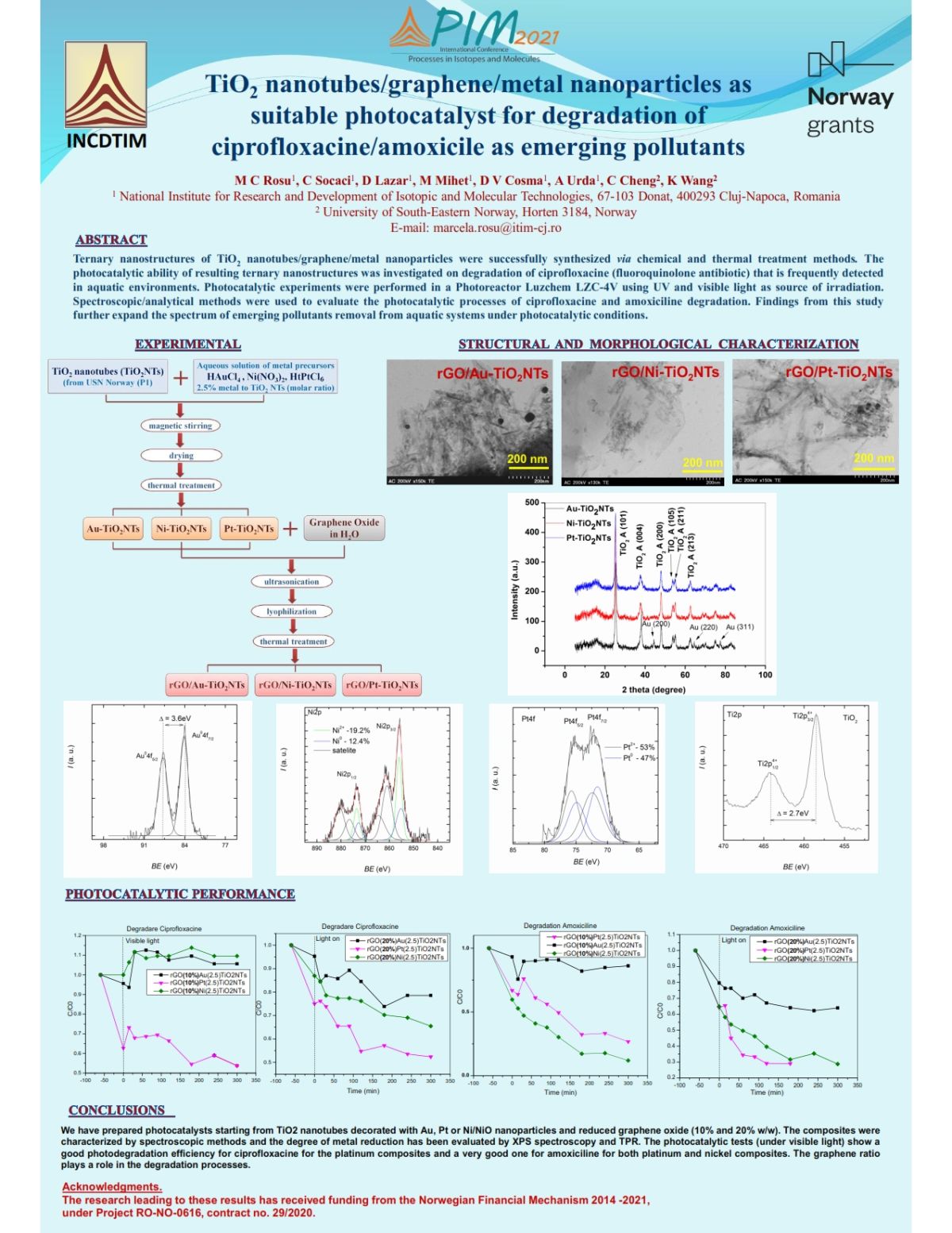 TiO2 nanotubes/graphene/metal nanoparticles as suitable photocatalyst for degradation of ciprofloxacine as an emerging pollutant