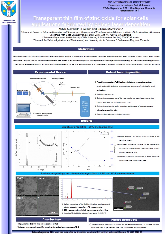 Transparent thin film of zinc oxide for solar cells applications fabricated by pulsed laser deposition